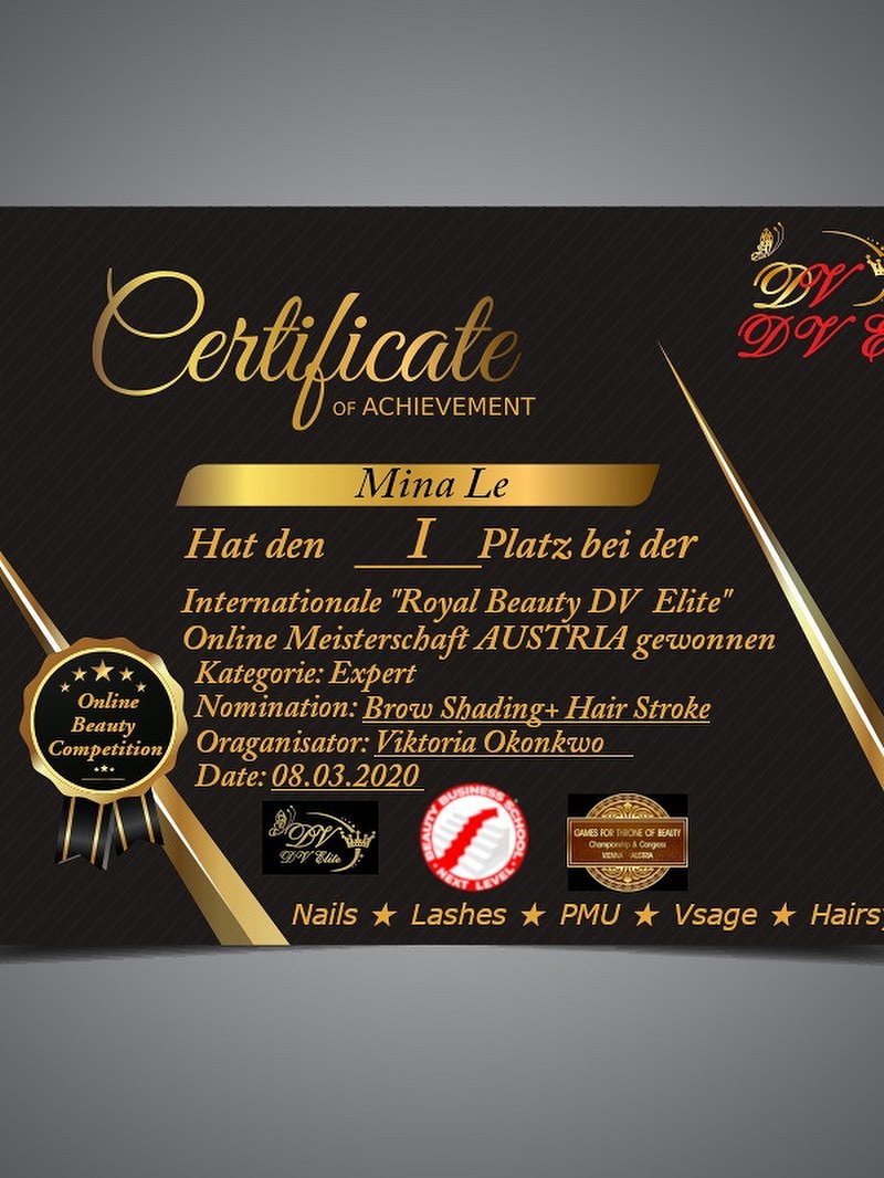 15 Jahre Erfahrung Master Permanentmakeup/ Microblading Trainerin für Wowbrows Academy/ Lentree cosmetics & Wimpernwelle Germany Jury bei internationalen Championships Speaker bei internationalen Conferences